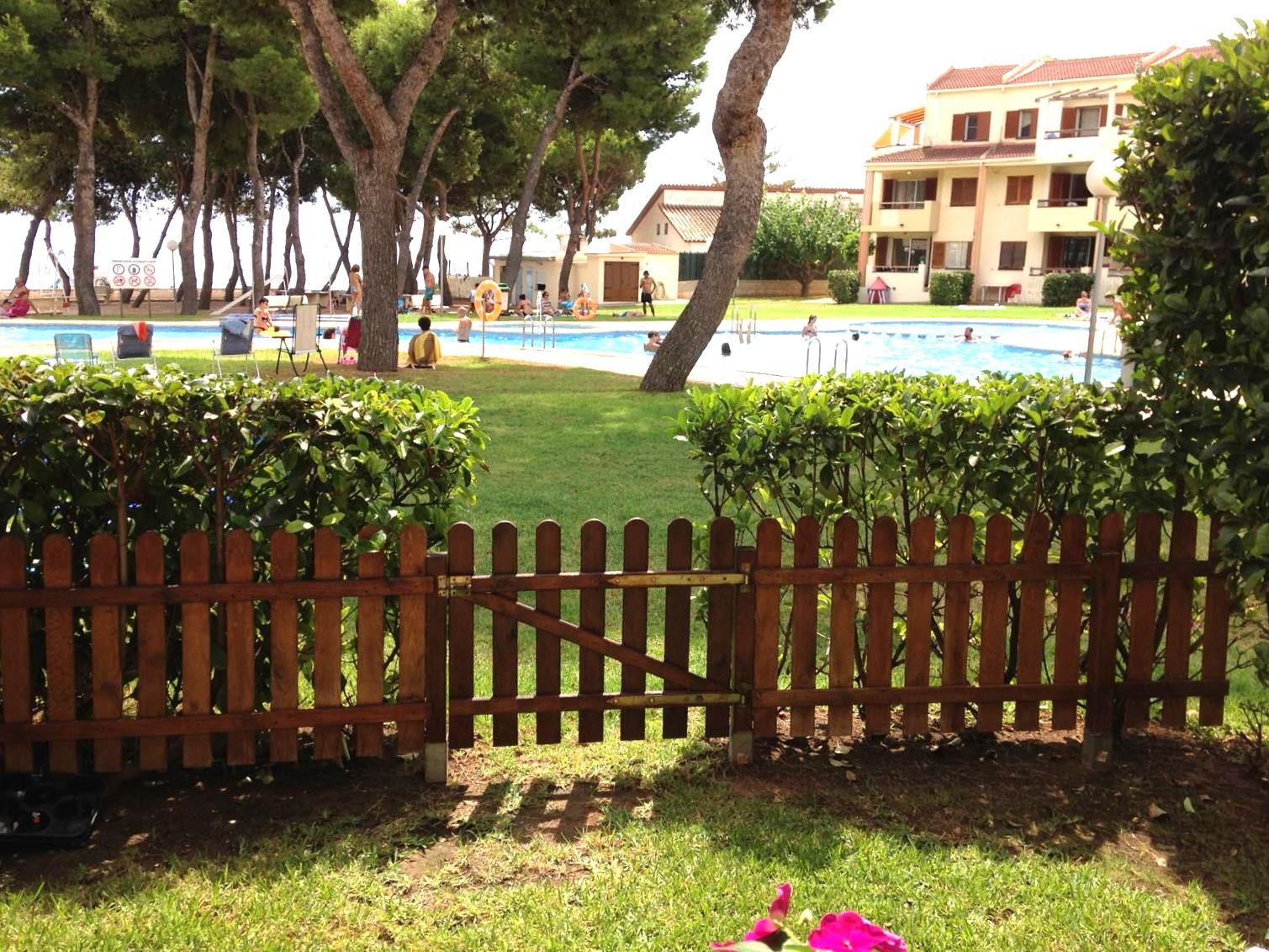 Apartamento de panta baja con terraza privada con acceso a la piscina compuesto por 2 habitaciones dobles, baño, cocina totalmente equipada y salón luminoso.